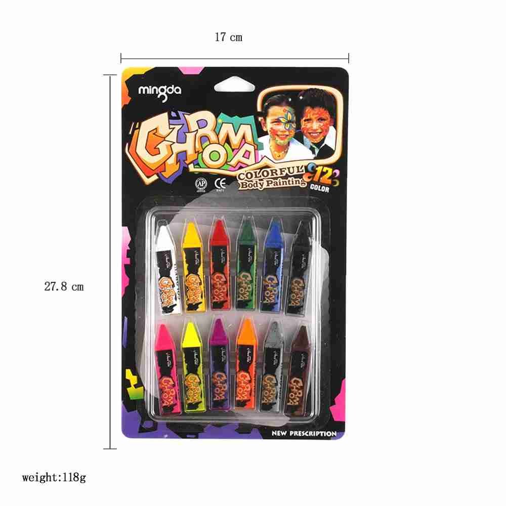 12-Colour Magic Wand Face Crayons Oil Paint Set for Kids’ Hand Painting for Prom Makeup or Halloween Body Art