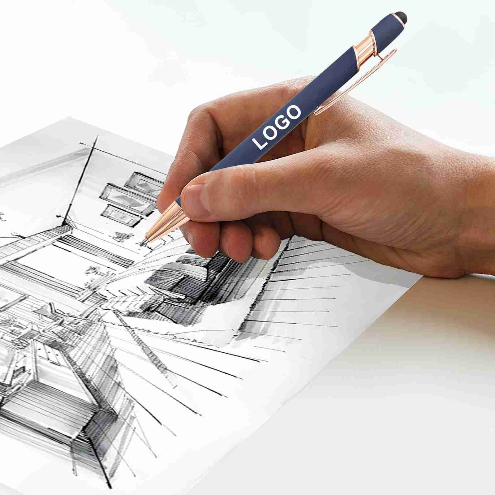 Wholesale Soft Rubber Metal Ballpoint Pen Rose Gold Parts Custom Logo Printed Engraved Advertising For Touch Stylus Phone