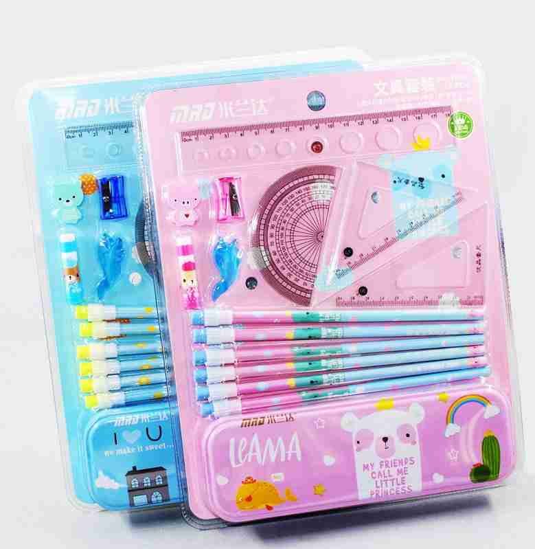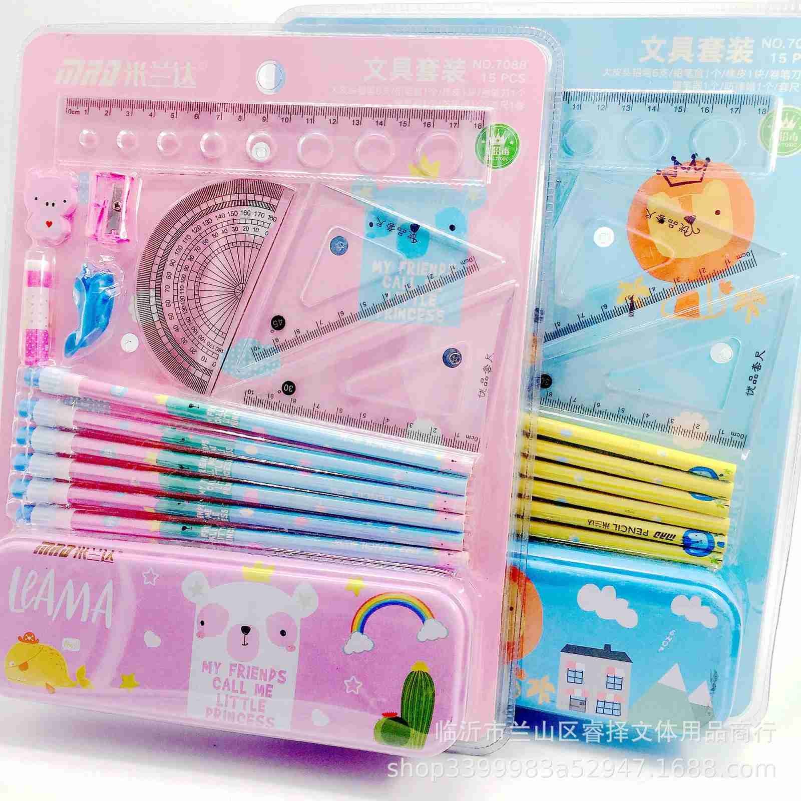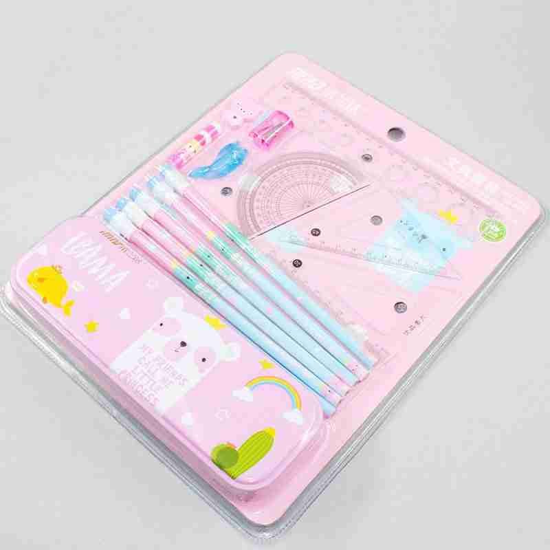Creative Cartoon Design Eco-Friendly School Stationery Gift Set Includes Plastic Pencil Ruler Features Protective Outer Box