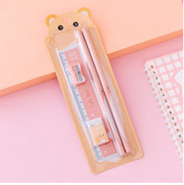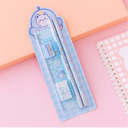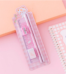 Including:2x pencil, 1x ruler, 1x eraser, 1x pencil sharpener.