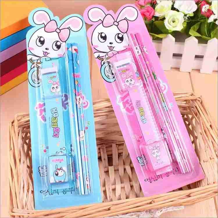 Creative Cute Cartoon Stationery Set Pencil Ruler Scissors Eraser for Students School Supplies for Kids