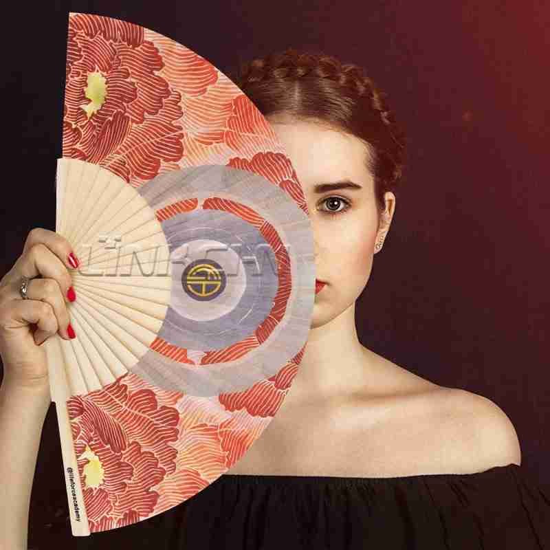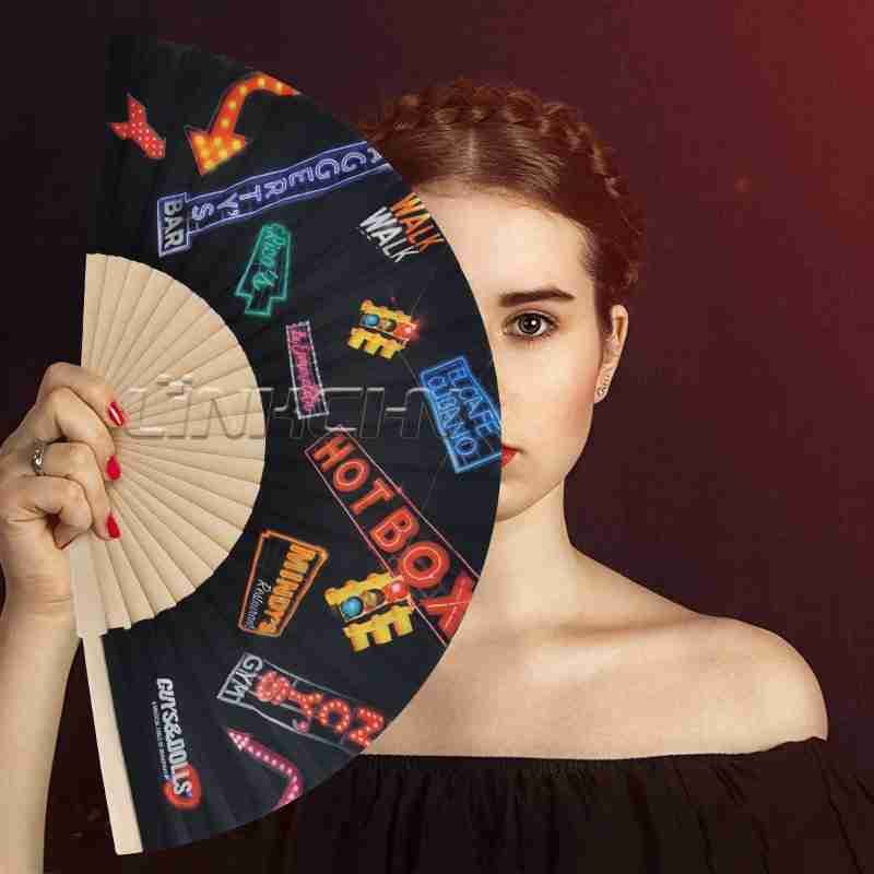 Elegant Custom Printed Nylon Wooden Folding Hand Fan as Events Souvenir