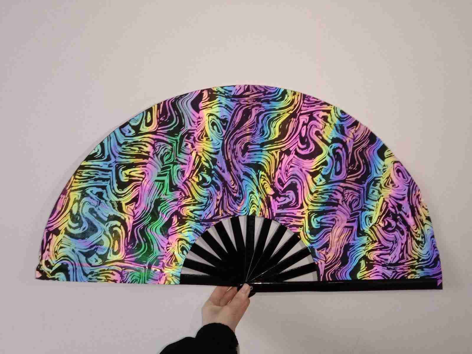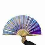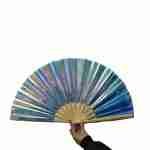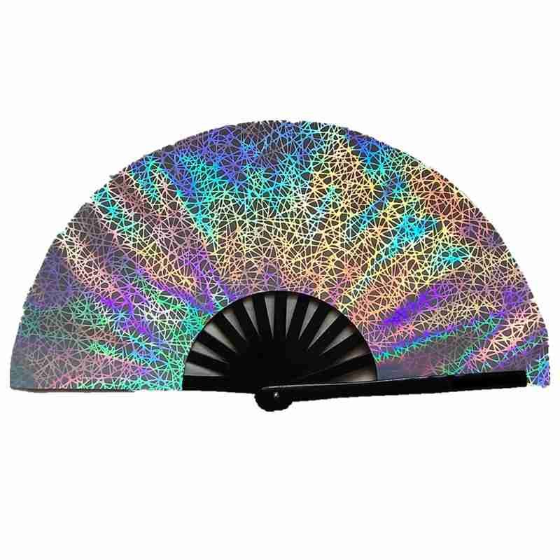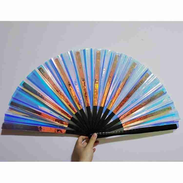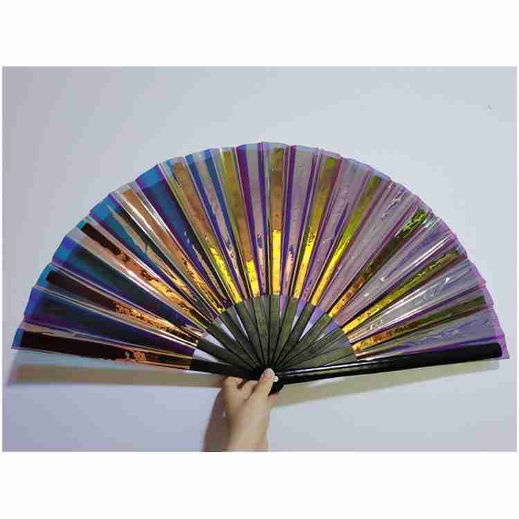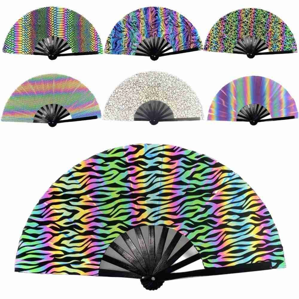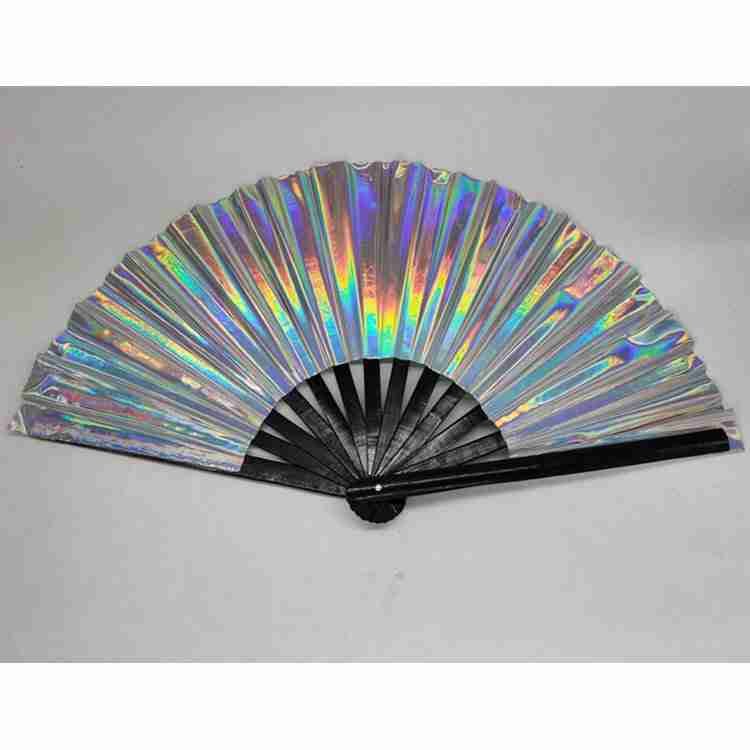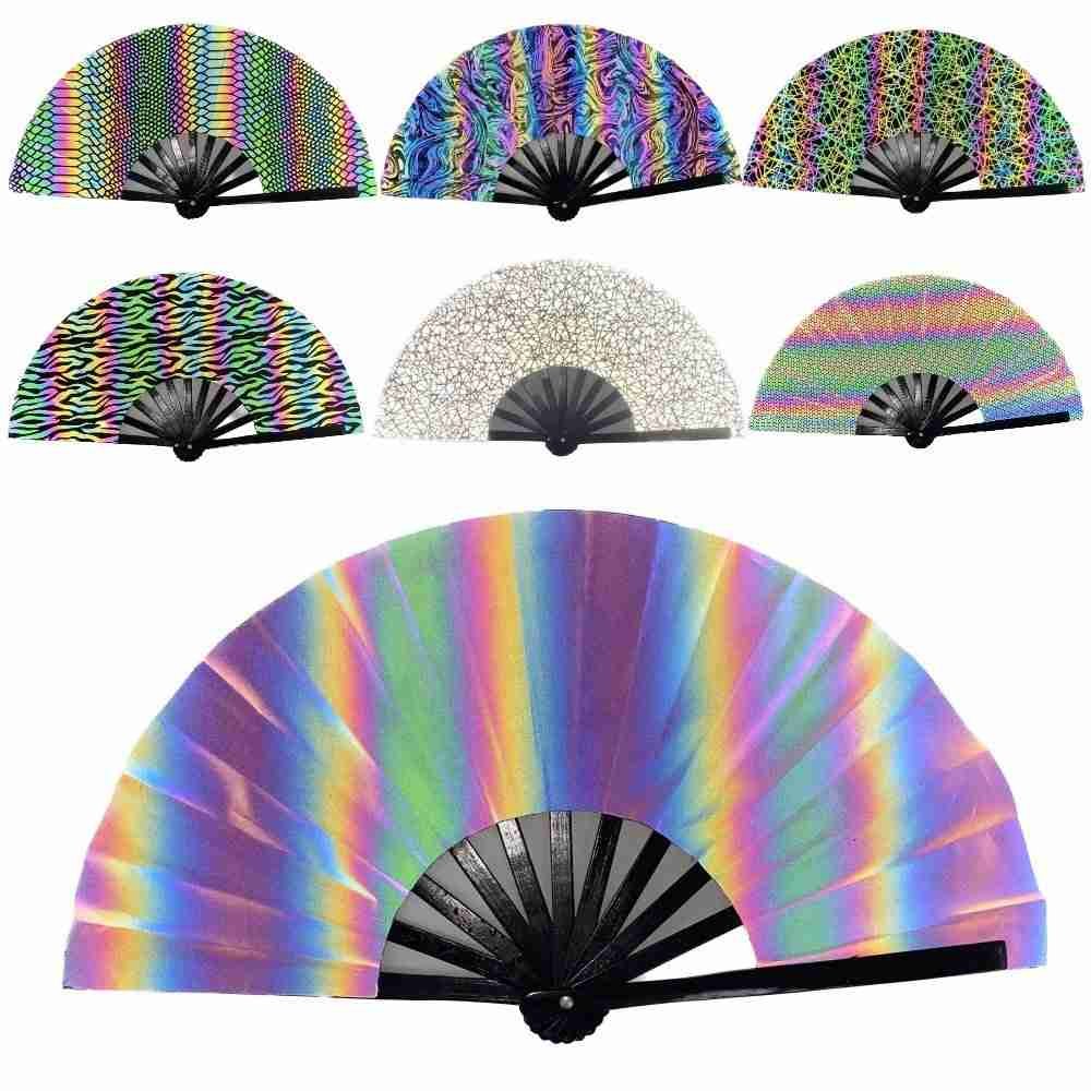 Large Reflective Hand Fan 27cm/33cm Holographic UV Fan High Premium Bamboo Foldable Clack Rave Fan Party Use