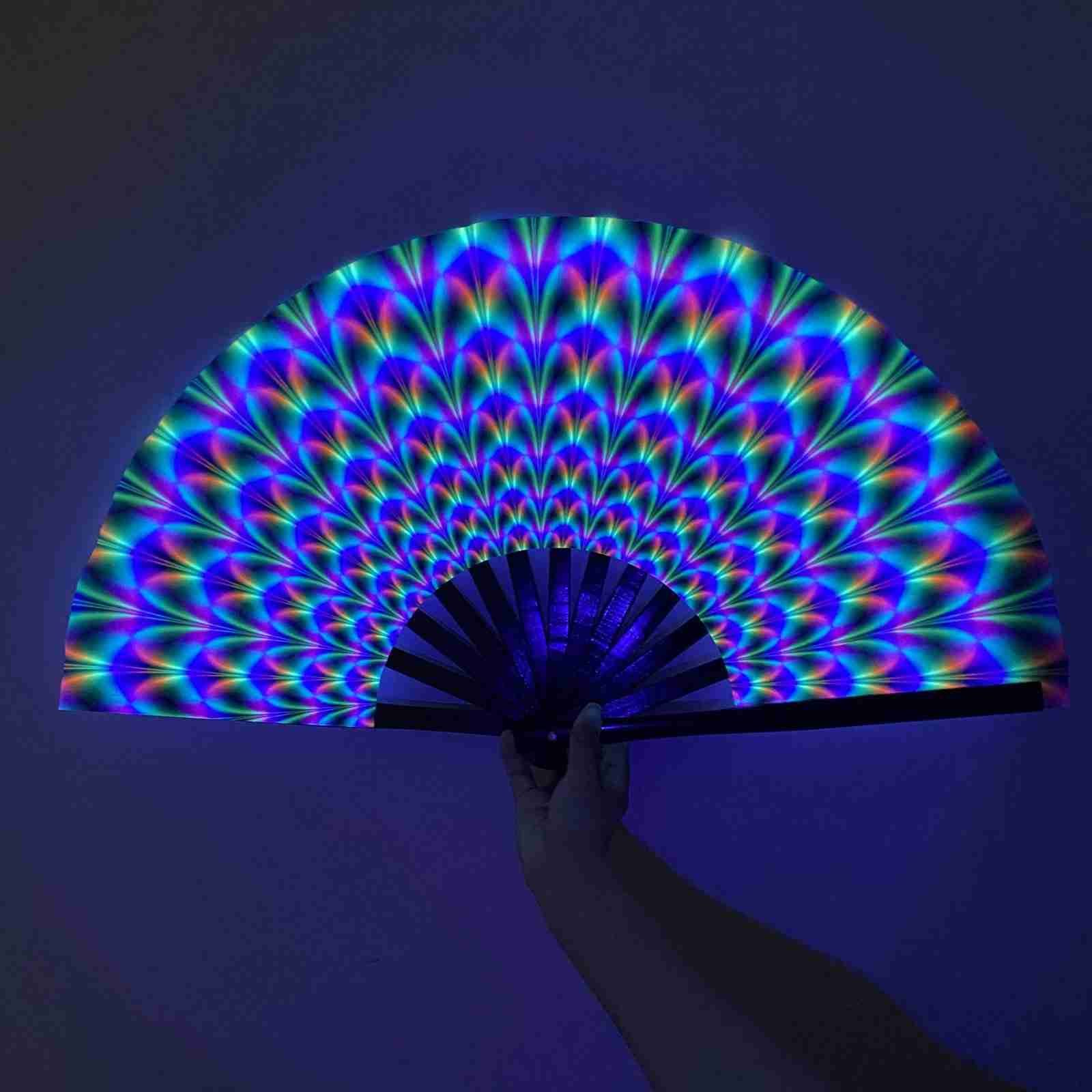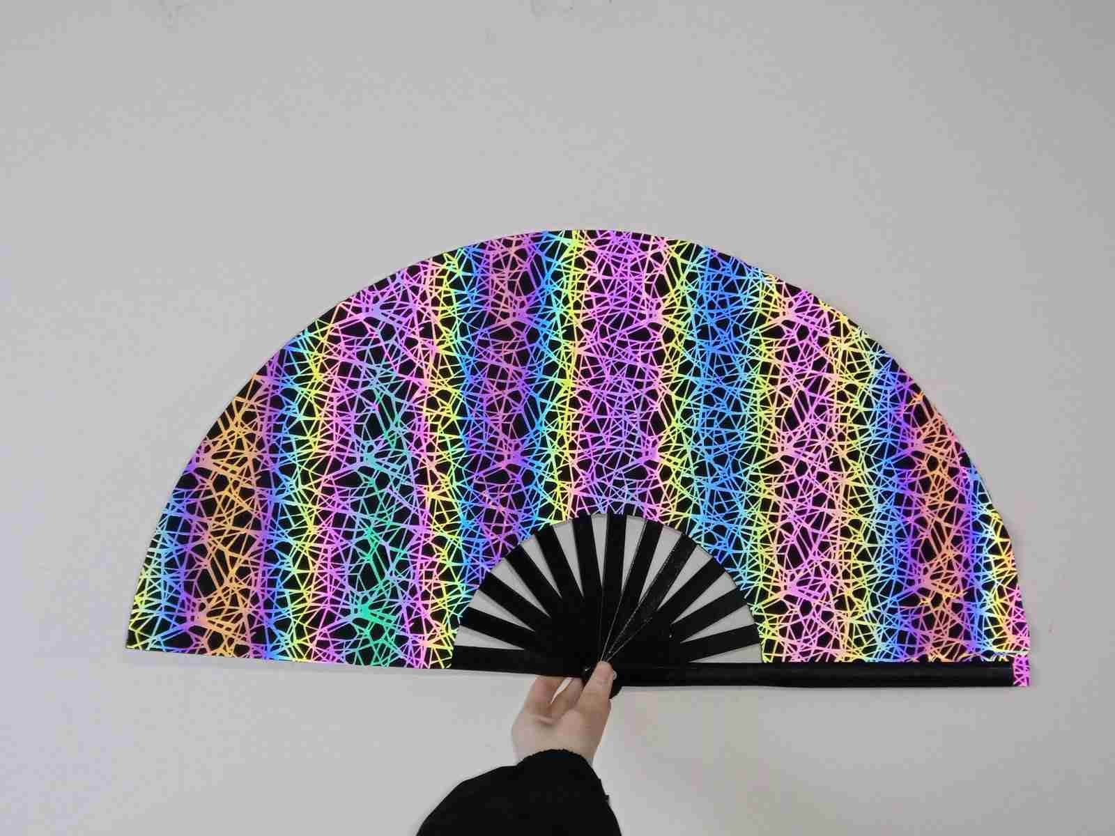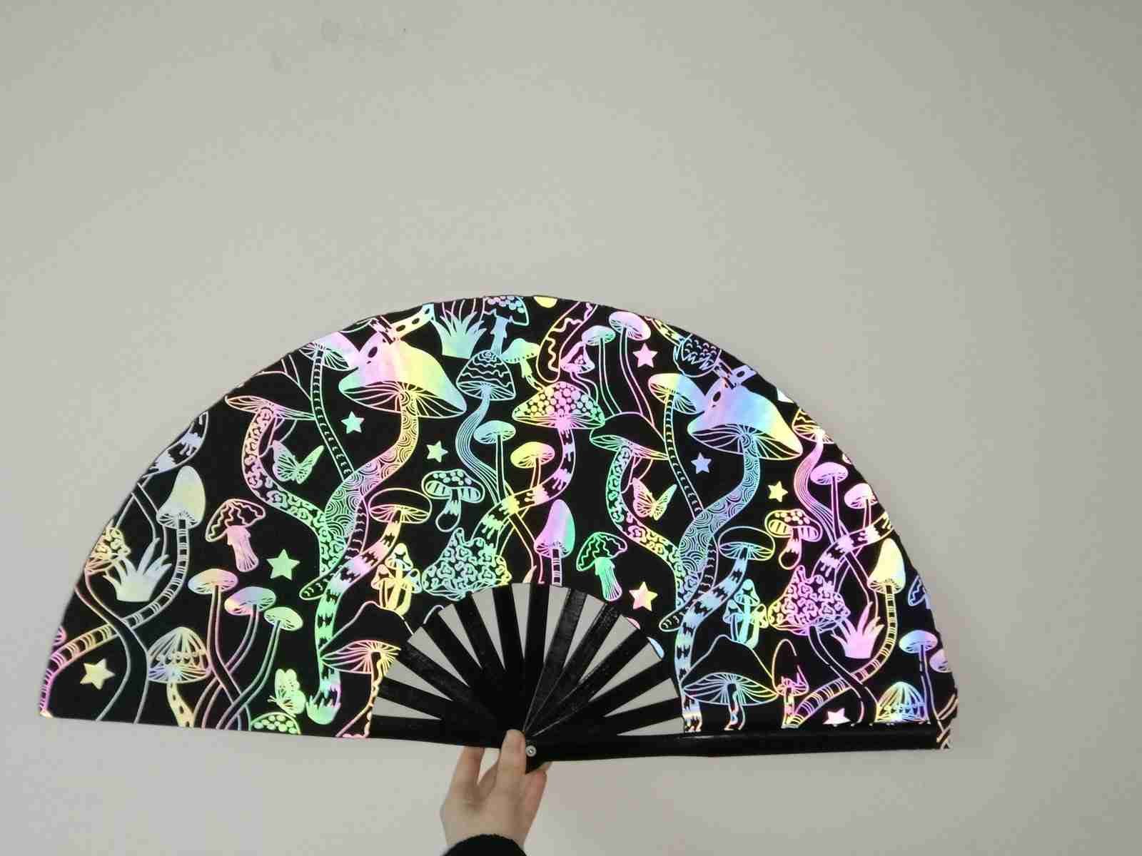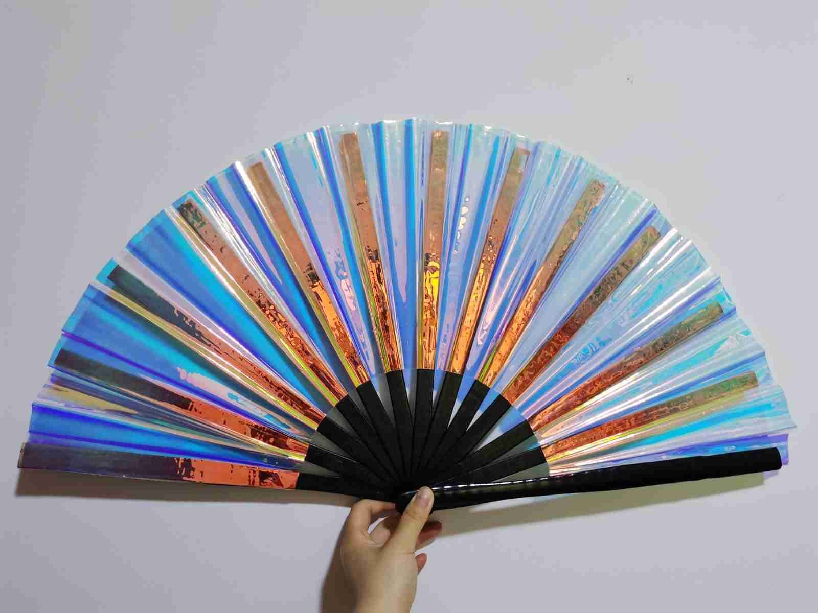 Large Reflective Hand Fan 27cm/33cm Holographic UV Fan High Premium Bamboo Foldable Clack Rave Fan Party Use