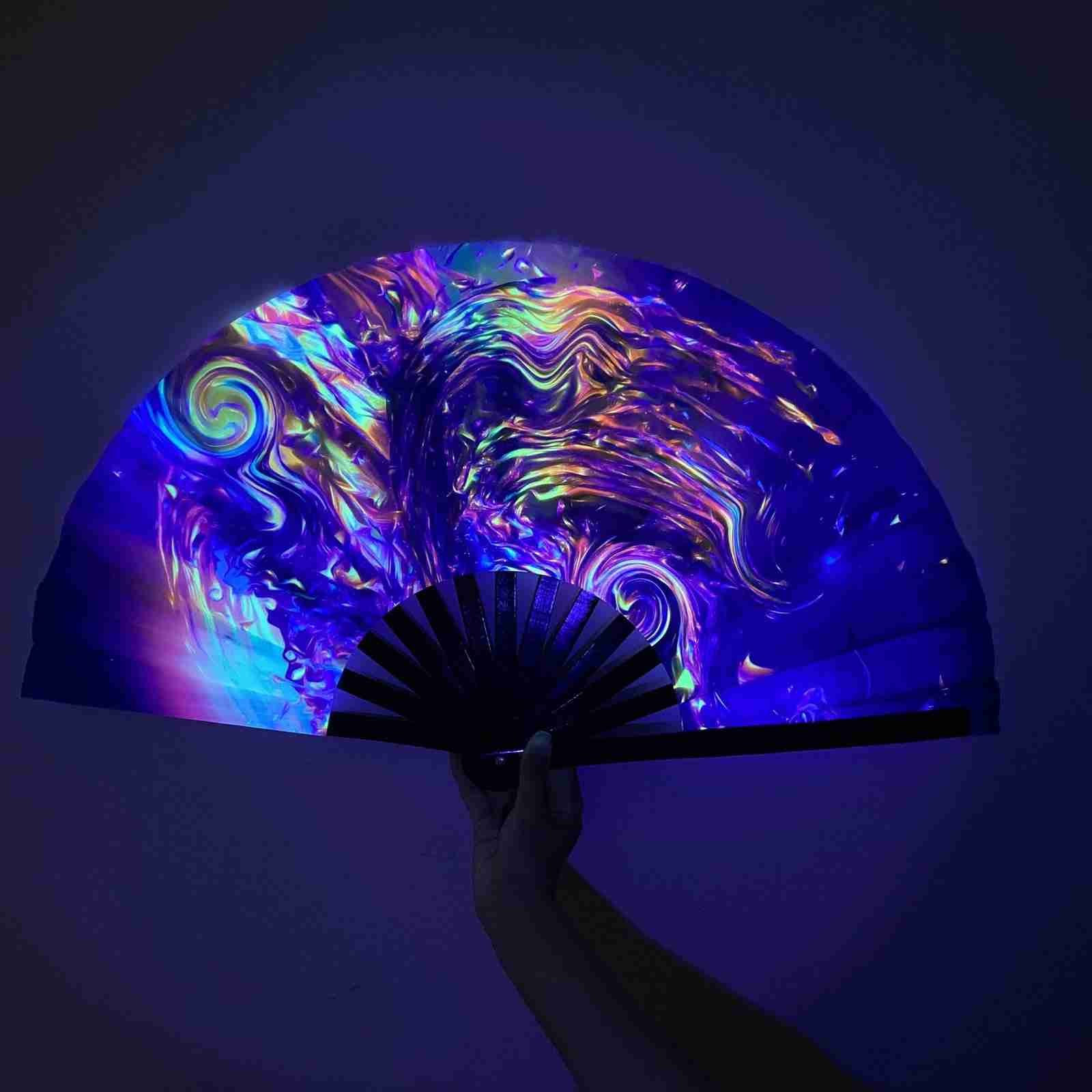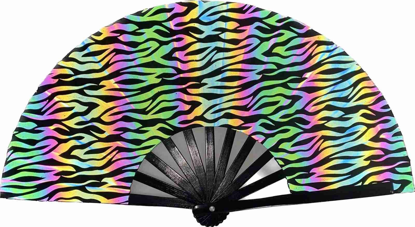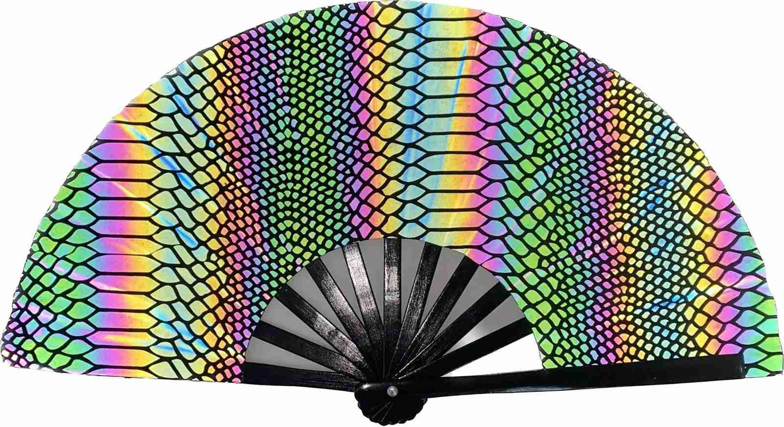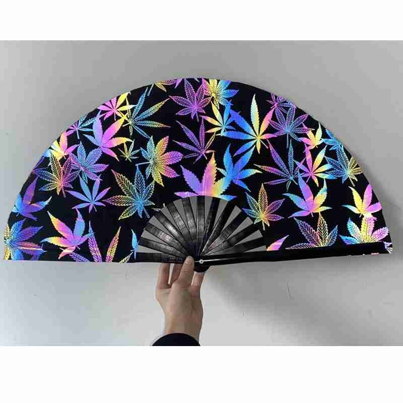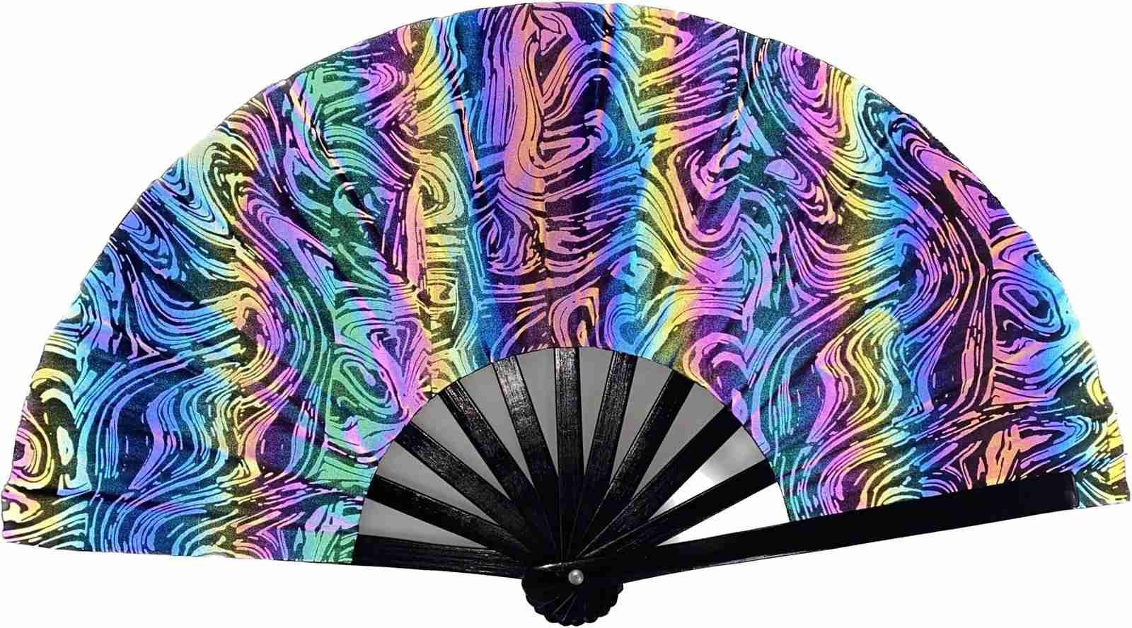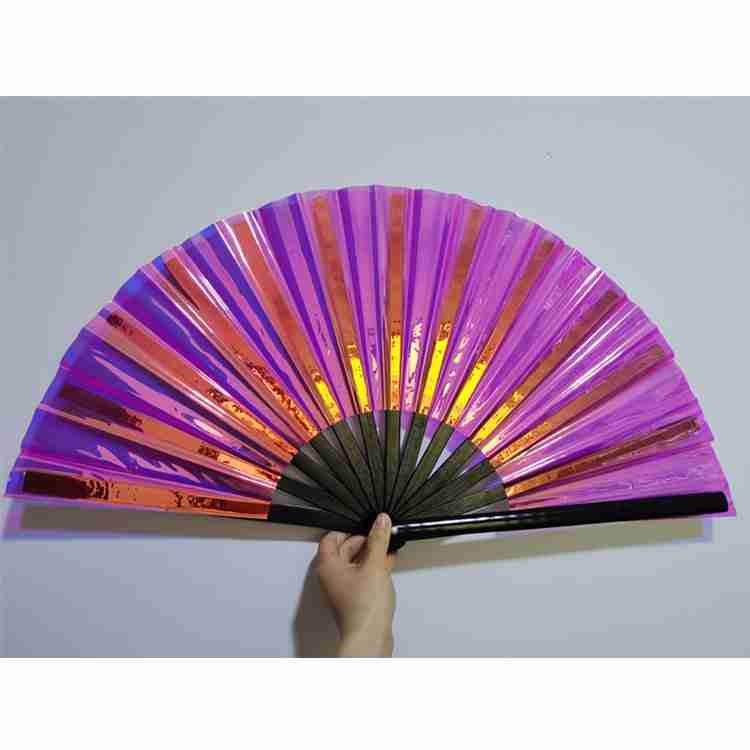Large Reflective Hand Fan 27cm/33cm Holographic UV Fan High Premium Bamboo Foldable Clack Rave Fan Party Use