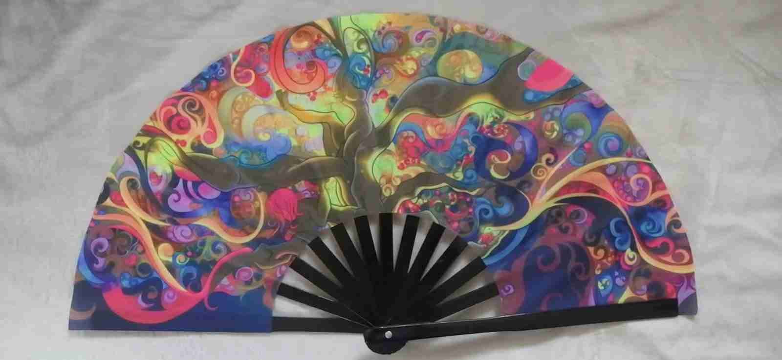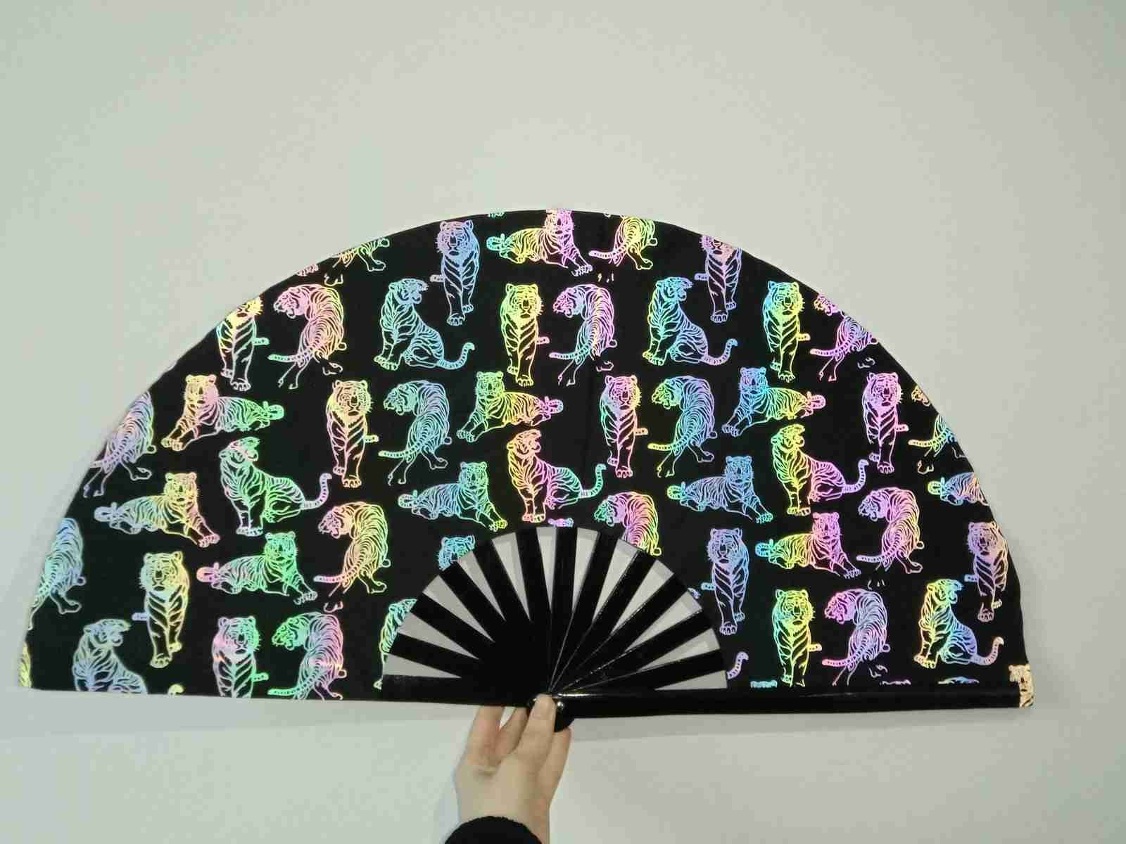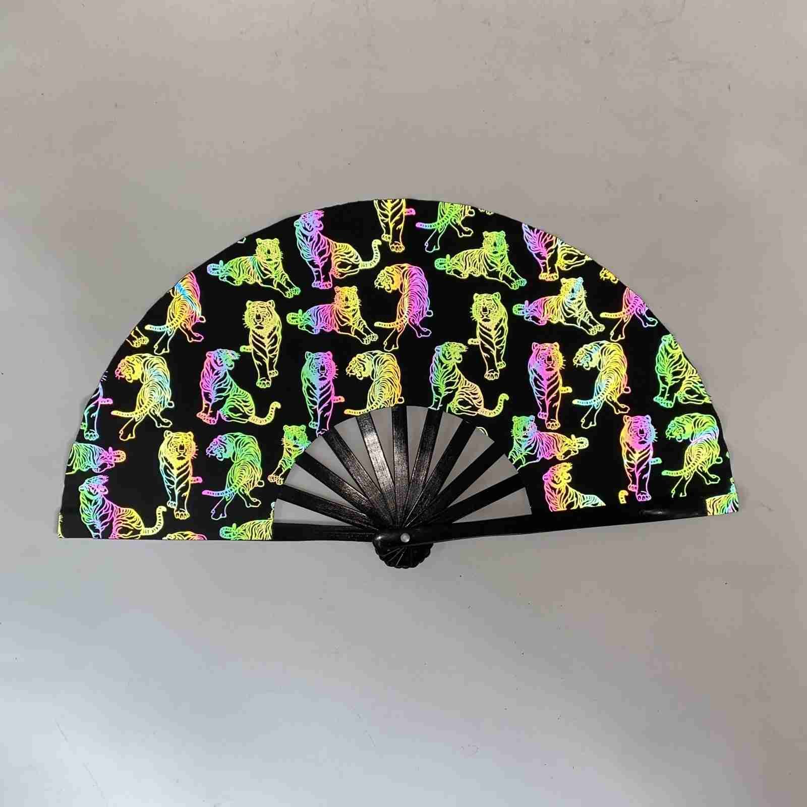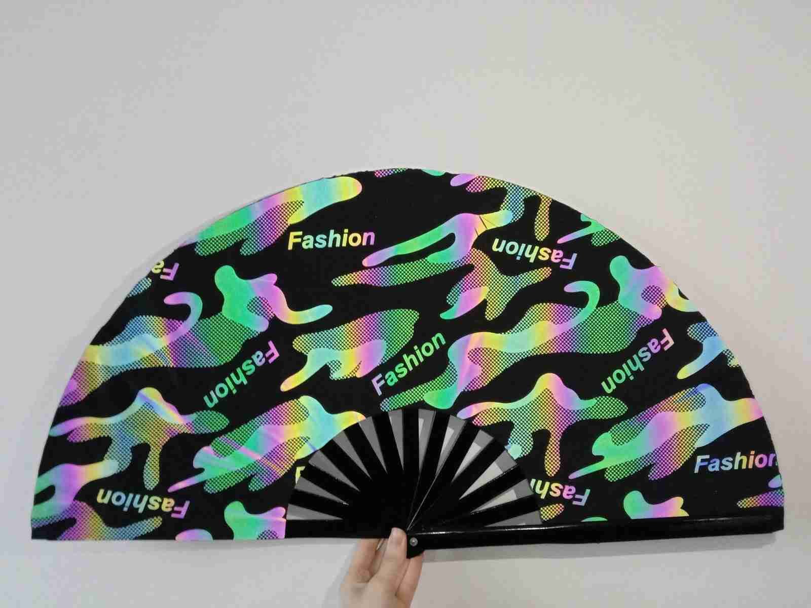 Large Reflective Hand Fan 27cm/33cm Holographic UV Fan High Premium Bamboo Foldable Clack Rave Fan Party Use