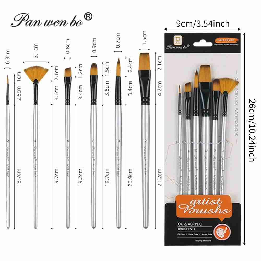 Panwenbo 6pcs Filbert Shape Nylon Hair Acrylic Oil Brush Paint Brushes Set Wooden Handle Oil Acrylic Painting Artist Brush