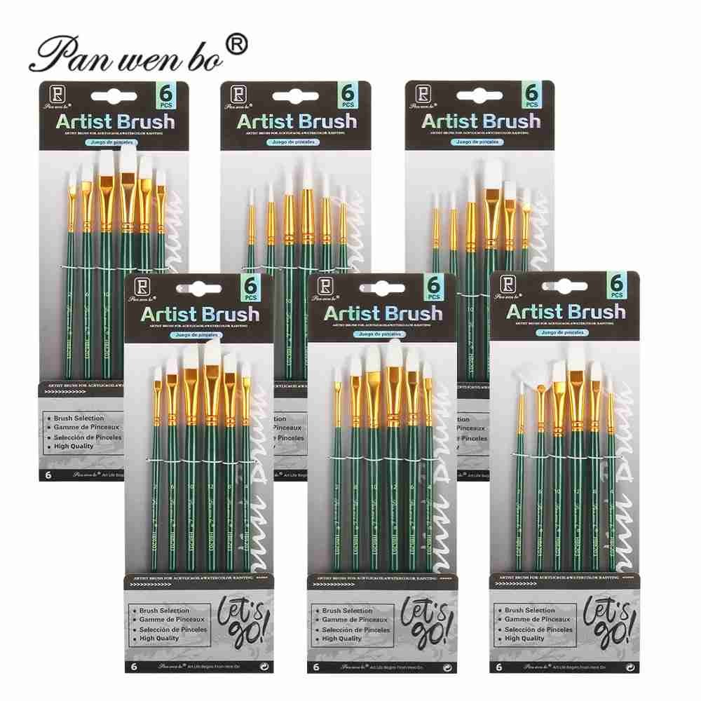 Panwenbo 6pcs Professional Flat Paint Brush Set Watercolour Paint Brush Oil Painting Brushes Set