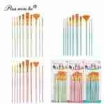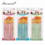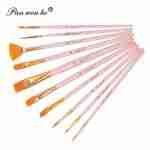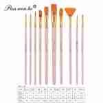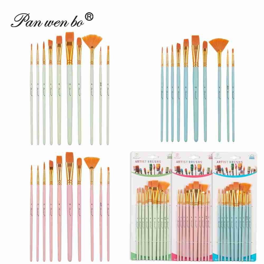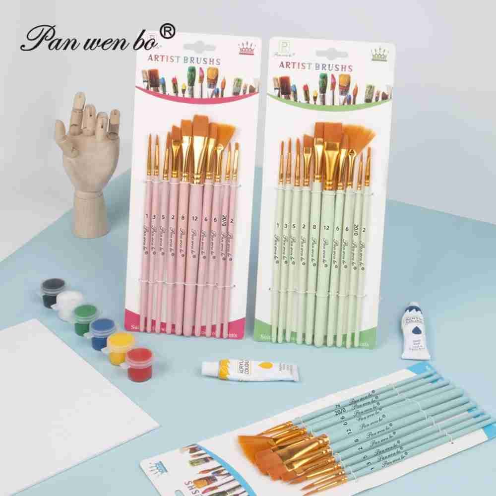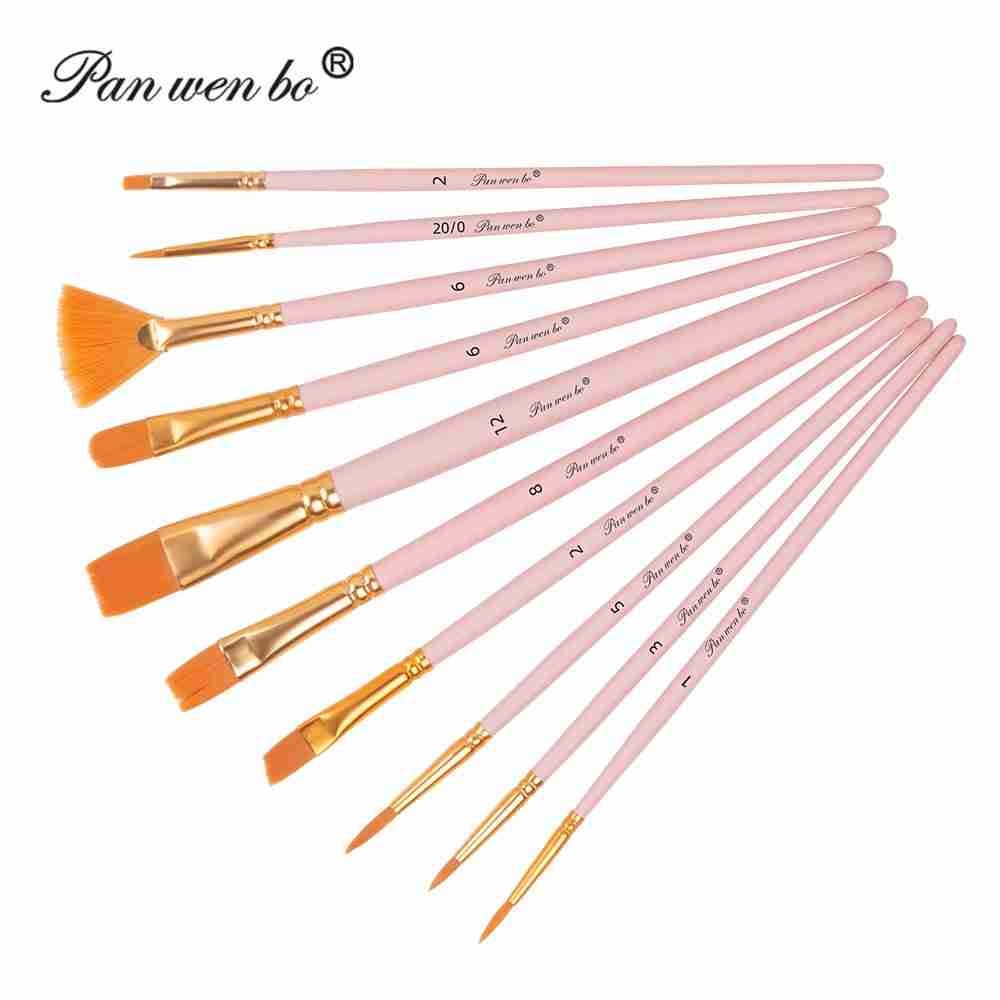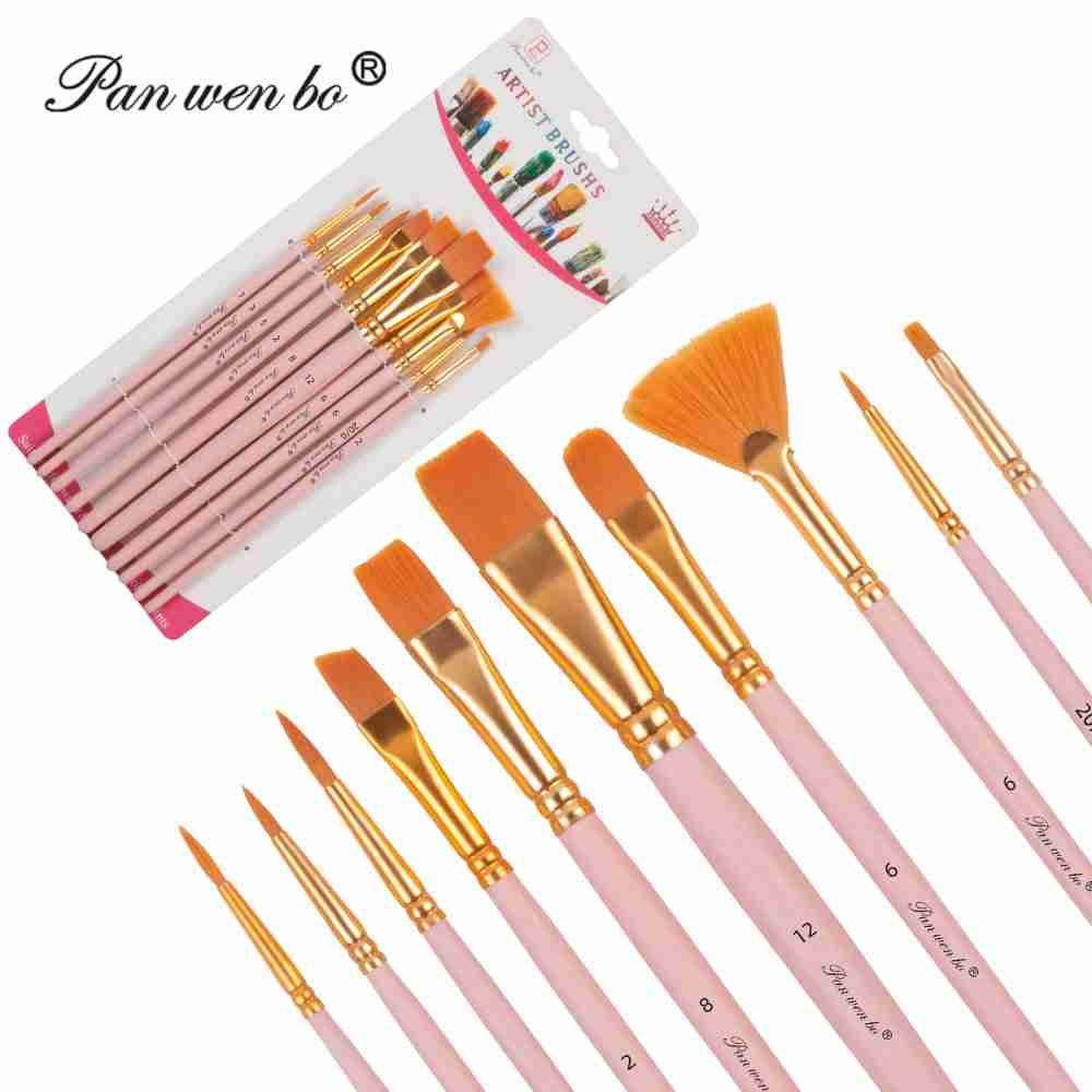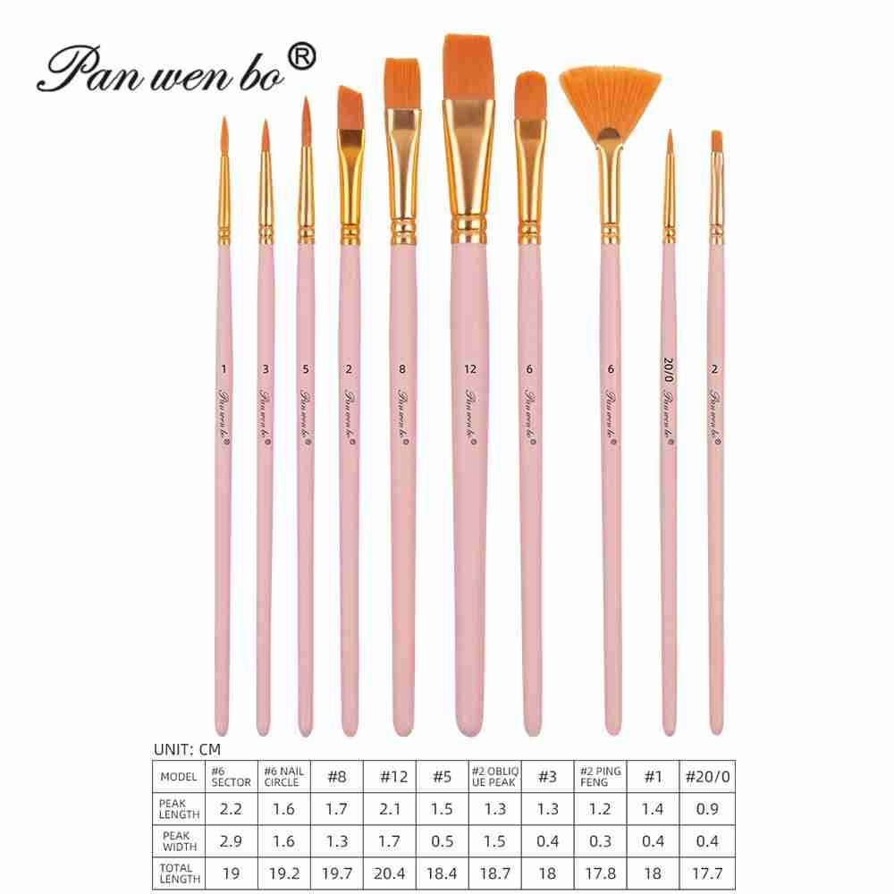 Panwenbo Artist Supplies 10pcs Mix Hair Shape Wooden Handle Watercolor Brush Acrylic Paint Brushes For Acrylic Painting