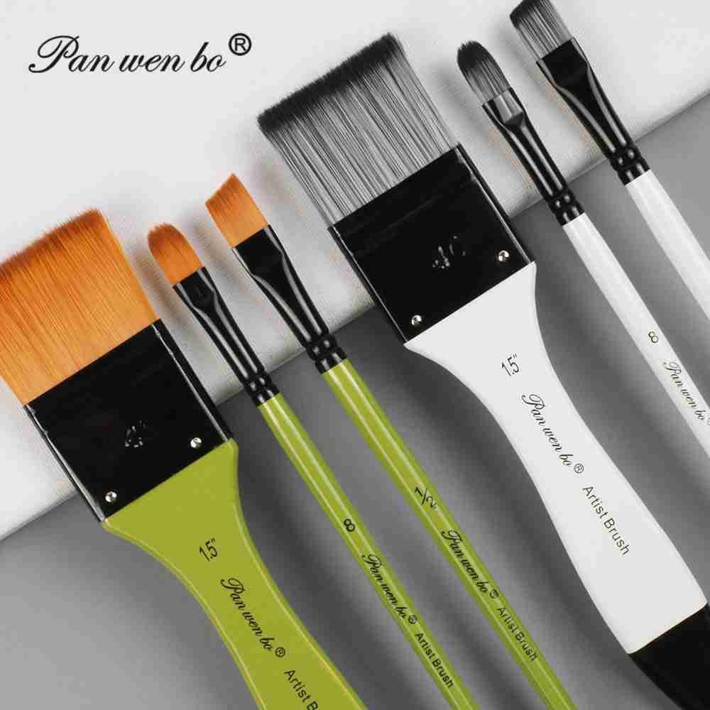 Panwenbo High Quality 6pcs Acrylic Flat Hair Painting Brushes New Arrival Watercolor Brushes Artists Personalized Paint Brushes