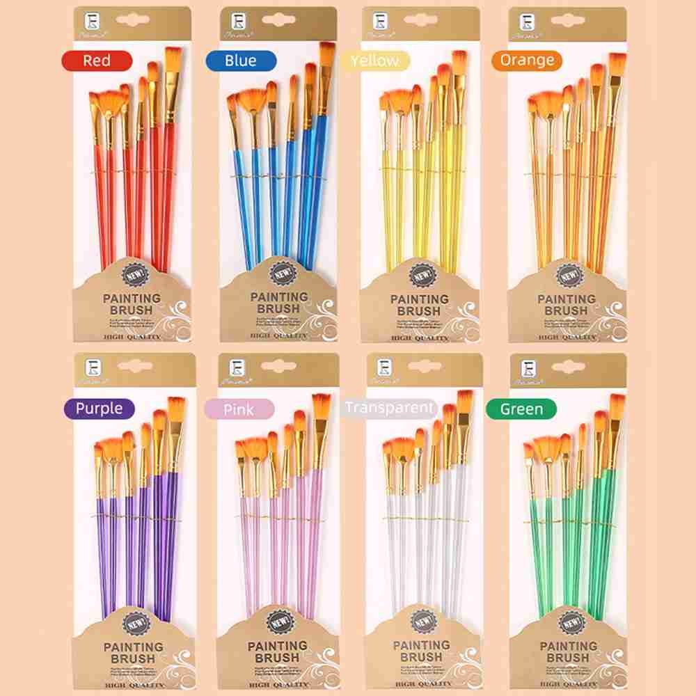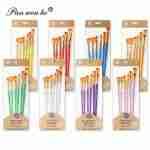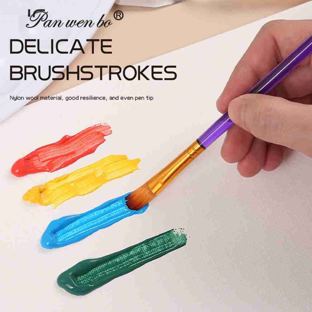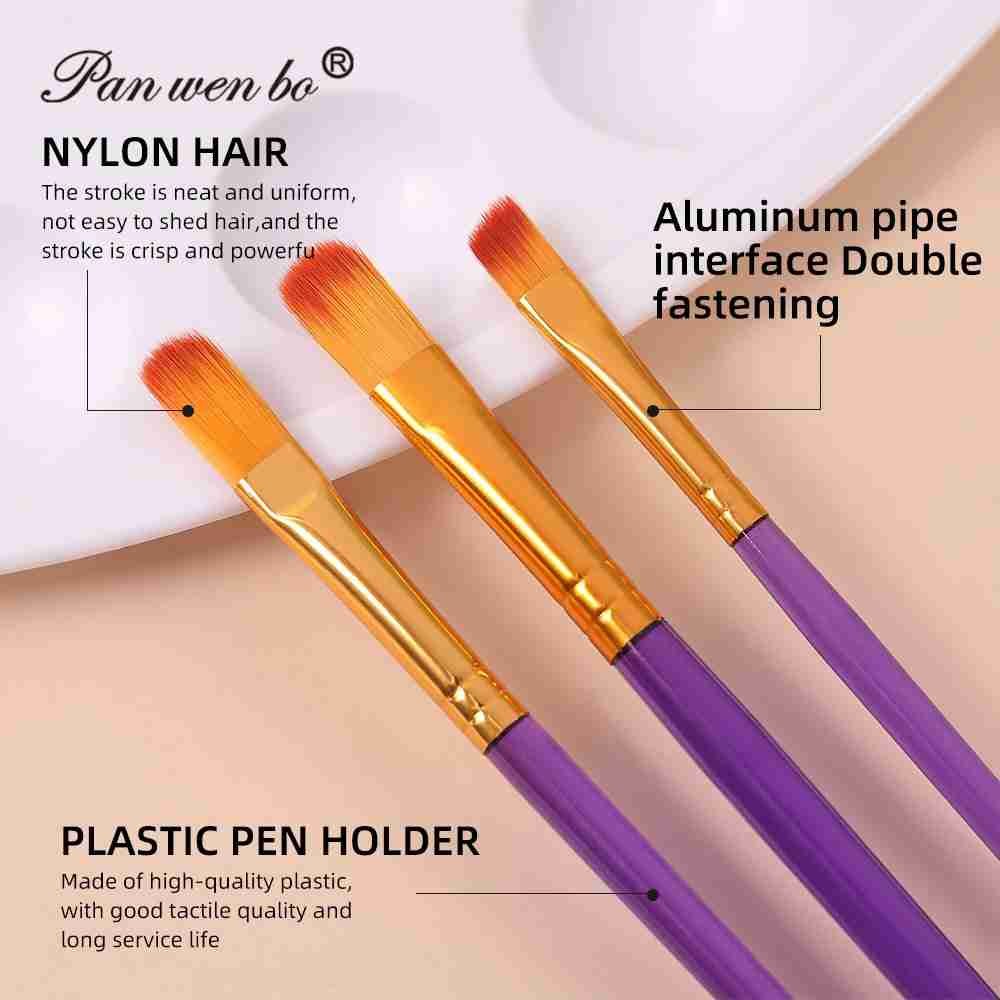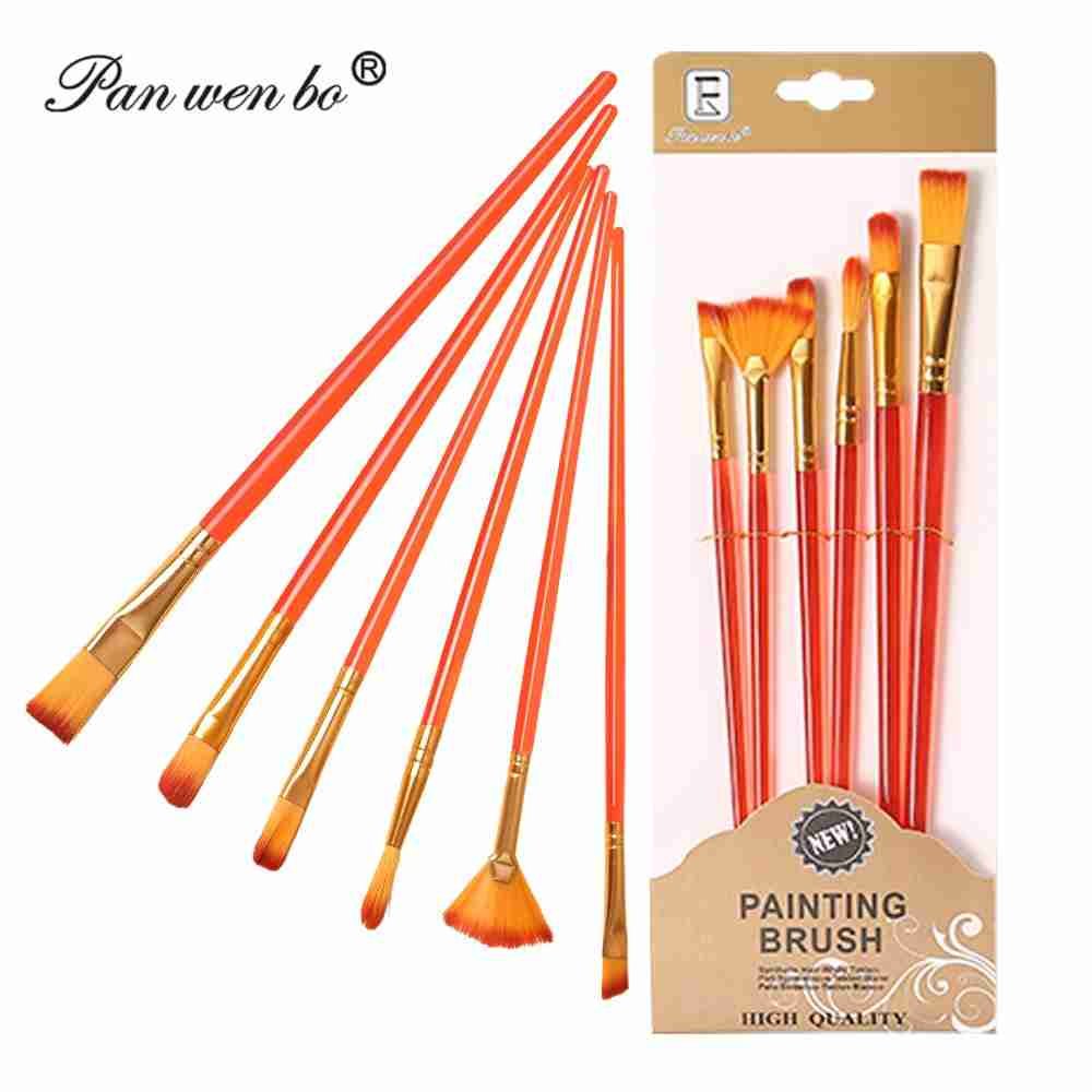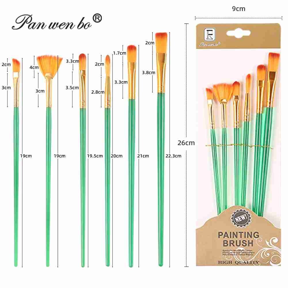 Panwenbo Organic Paint Brush Plastic Nylon Hair Color Acrylic Multishape Paint Brushes Set Of 6