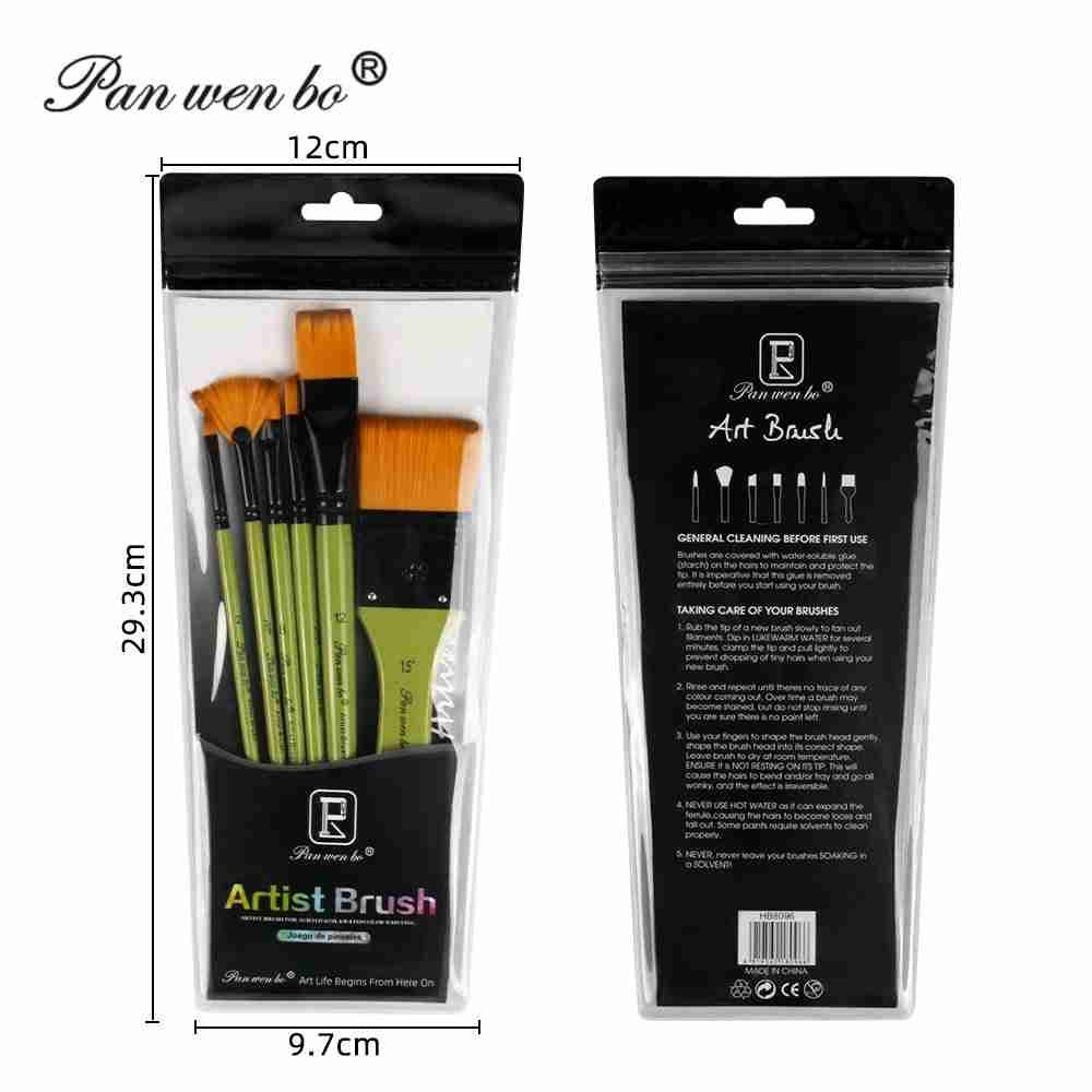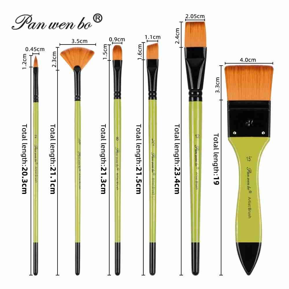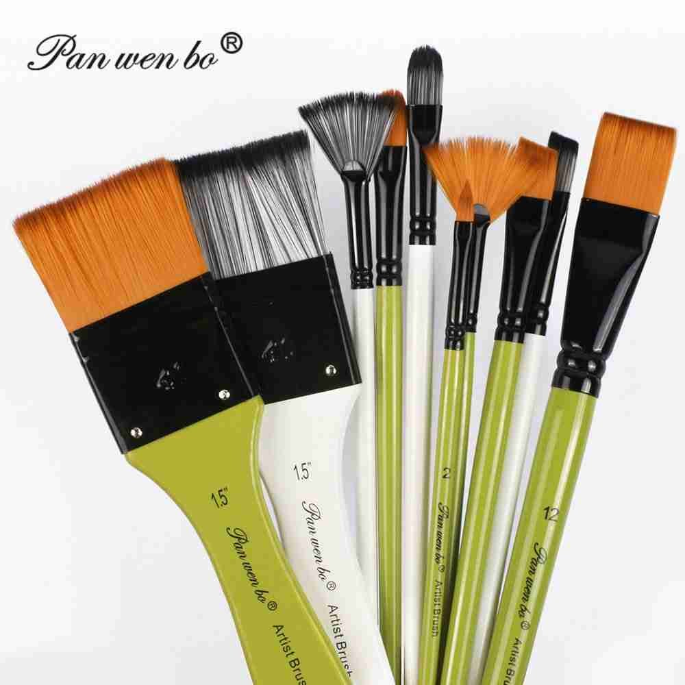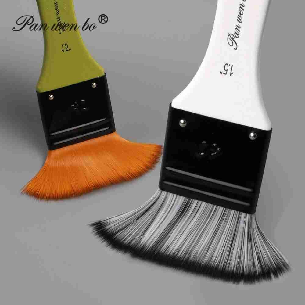 Panwenbo Professional High Grade Watercolor Art Paint Brushes Large Flat Fan Shape Nylon Hair Wood Handle Artist Painting Sets