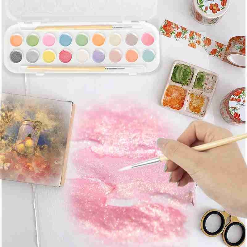 Signature Metallic Watercolor Set, 18 Piece Pearl Paint, Perfect for Wall, Paper, Canvas, and Wood Painting