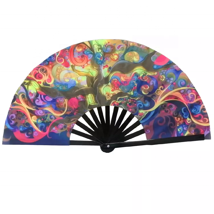 Bamboo Ribbed Folding Handheld Fan for Men/Women UV Glow Rave – Large Clack Festival Fan