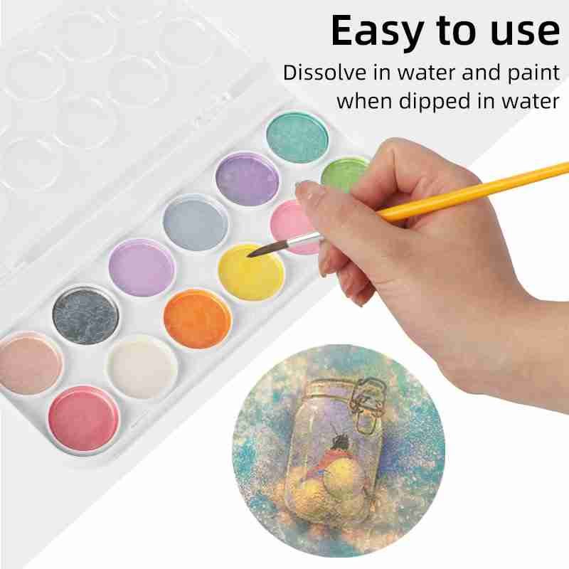 Watercolor Paint Metallic Set 12 Colors, Semi-Moist Watercolor, Idea for Beginners and Artists for kids